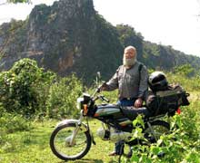 Liking Viet Nam he went back there in 2005 after spending 36 years up and down the US West coast building bridges and docks, and tugboats and cranes for a company. in order to make a trip through the country on a motorcycle, with a plan to photograph all the boats and write a book about the trip. He has worn out a couple of motorbikes as some of the roads on the Lau side are horrendously bad dirt and gravel, many with water crossings with no bridges, or over very scary bridges.