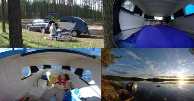 To get some extra use for the building effort, I had the idea to combine the boat and a teardrop trailer. The original idea was to build the boat for kids (or for myself ..?) so it had to look funny -  at least it brings smiles to people's faces.