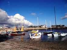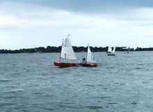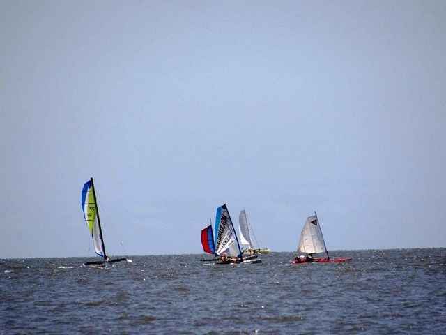 The last is a spectacular picture that Lenna Andrews took with a long lens from way back on shore. I love the contrast of the bright boats and the grey water and sky.