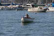 By the way, a long time ago I sent some pictures of a boat that Mark was building out in California. He designed it himself using some old Herreshoff plans for inspiration. He says it sails like a dream and goes to weather like it wants to. You can see why if you look closely at the picture of it on the trailer. That long skinny board you see in front of the wheel is it's dagger board I guess, the thing must be ten feet long. It wouldn't work here in the shallow water we have but is just the thing in Southern Cal. It sure would be nice to see a picture with it's sail up Mark.