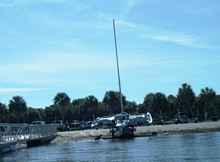 There were lots of those giant three engine racing looking boats going out for a fishing tournament. I notice that none of us took a single picture of any of them. Simon was there again with his dam Pesky Goat Island Skiff (capital P). For a simple, cheap (unless you finish it like he did) boat this thing really goes. I would definitely recommend this boat for anyone who wants an easy to build performance boat. It wouldn't work for me because it doesn't have a wide deck to keep the water out when I screw up and heel way over.