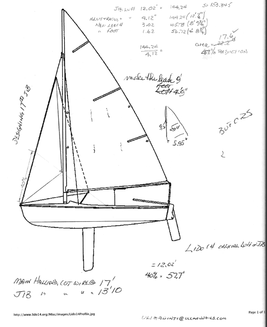 For the jib, I contacted "RAVEN", Emilio Marino, the author of "The Sailmaker's Apprentice" and contributor as "The Sail Doctor" in "The Small Craft Advisor" magazine.