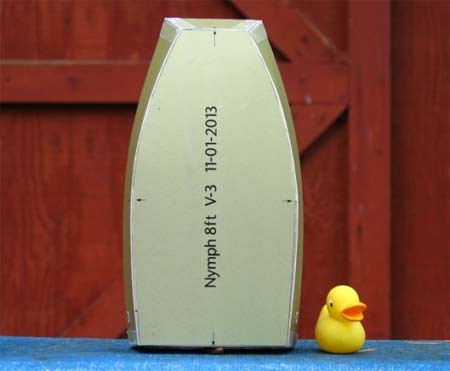 I was originally going to call the hull the “Otter 8?”, but there are already plenty of boats called Otters out there. Even though I saw a pair of Otters out playing on a log today on my 5 mile walk. But the new name became the Nymph, and I debated over to use an insect or fairy as the logo for the new hull. As you can see, I went with the winged fairy, and will use that logo for all the print material associated with it.