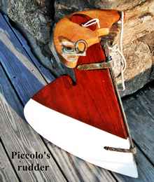 Moving on, I first read of Piccolo over 20 years ago in an essay by Phil Bolger. In it he remarked about Piccolo's remarkably delicate intricacy of construction (and he was not wrong about that!). Bolger went on to present his alternative, a simple plywood sailing canoe that could be built in a week or so. It was a test bed, but also sort of an antithesis of Piccolo's paradigm. He called his design "Eeek!" - in contrast to the noise a piccolo makes. Twenty years ago I built an Eeek! and sailed it as much as I could . . . and she could do everything Piccolo can. Bolger got that part right, for sure.