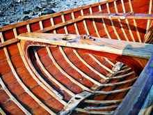 "Piccolo" - she's a traditional lapstrake sailing canoe (held together with nearly a thousand tiny copper nails, all clenched over), yawl rigged with standing lug sails, and is about 13' or so. She is pointed out and offered to each and every potential sailor at the WoodenBoat School, but has only ever been sailed a handful of times. Perhaps just twice in the last three years - including today...