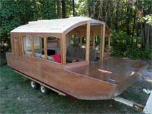 My wife has made it clear she does not care for my "beach cruising" sailboat, "Whisper". To her credit she and our son have joined me on many outings and as long as I keep the "tippy" boat under control all ends well. I've had dreams of expanding my sailing horizons and designed several sailboats (started building one) but not including my wife was not an option for me, so little came of these designs. One day she commented that "if we had a more comfortable boat I'd go out more often". It got me thinking. The result is a "Mini" houseboat that is fairly easy to build from materials largely available at local lumberyards, which doesn't look too much like a box.