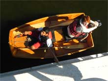 Construction is kept simple by using "frame" and "stitch and glue" where they are most advantageous. Most of the boat is built on two benches in long flat panels. These panels either lock together "egg carton" style or are glued and screwed with epoxy and deck screws. The curved ply for the bow is easily bent into place.