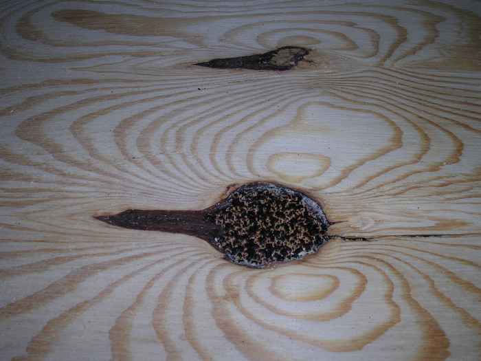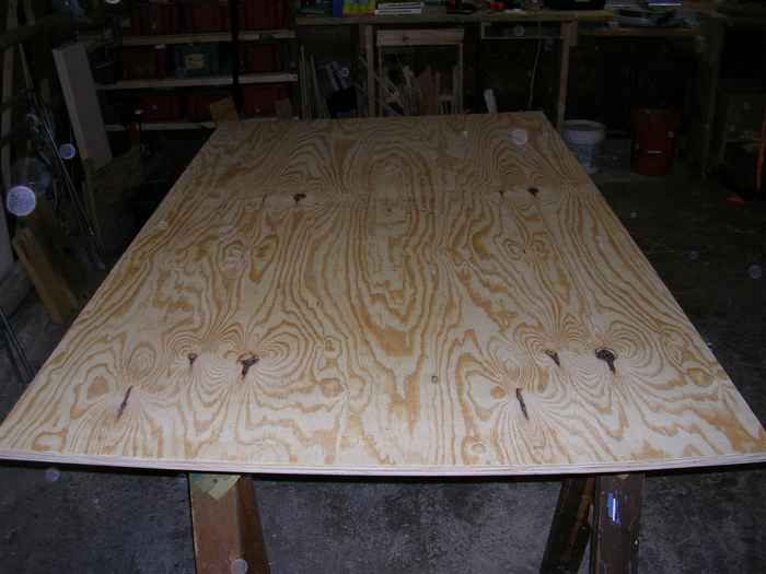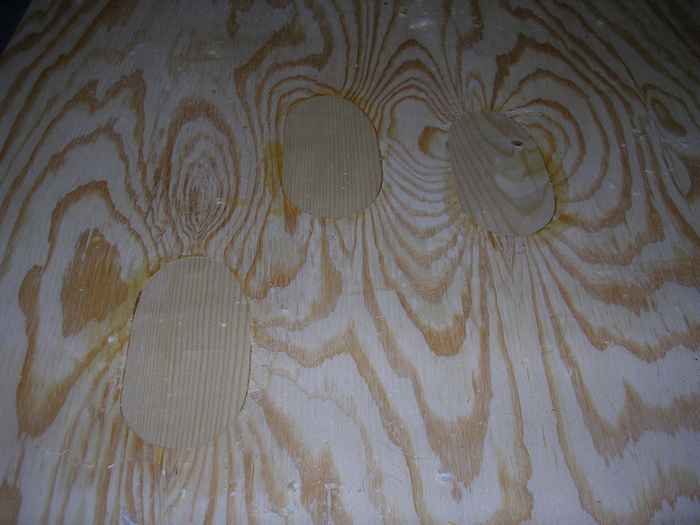 I'm cheap; hence I'm using cheap plywood which has knot holes in one of the faces. By examining the edges of the sheet, it appears to be relatively void free in the core, but the exterior face wasn't so pretty.