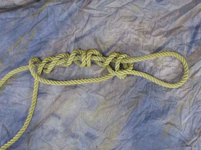 Thanks again for reading my stories, and in the next photo story, I will show you how to make the DGH into the Death Grip Belt Hitch, where the knot is “inline/parallel” with the single line used to tie it.  I had been calling it the Barrel Hitch, but Belt seems a better match.  The Belt/Barrel Hitch (with small line) can be used at intervals to hold sections of a mast together while the epoxy cures, or for other uses where you need to use a line to act as a belt to hold stuff together.