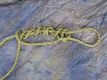 One thing nice about the Death Grip Loop, is that once the tension is off, you can make the loop bigger or smaller, and once the tension is back on, it will not move.  If you've had the loop under “a lot” of tension, you may need to put a marlin spike or fid under the part of the loop that crosses over the coils.  Once you do this the knot can be moved or removed.