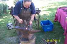 There have always been blacksmiths associated with the boatbuilding industry. Most of the East Coast shipyards, where they constructed wooden ships, had specialists, called "ship smiths", who fashioned tools like caulking irons and marlin spikes for boat builders. I still custom forge these tools, in various sizes, for the trade, patterning my irons (made out of high carbon tool steel) from antique tools that I have acquired over the years. Pictured below are caulking irons that I forge, and also pictures of me forging them. Because I use only the best of materials, and forge them by hand, each individual tool will last a lifetime. I am employing the same techniques in forging these items as blacksmiths used for centuries, guaranteeing accurate workmanship.