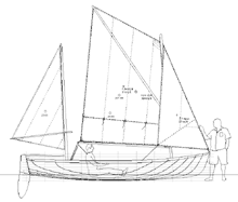 Nugget with her gaff-headed cat rig with a tiny jib set flying... |