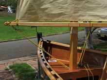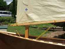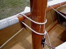 One of the sailors was having a small problem when rigging – the boom would swing forward and get caught under the gunwale. The original square lashing wasn’t cutting it – particularly when a loose foot arrangement was used on the boom. The square lashing …