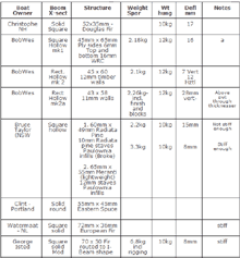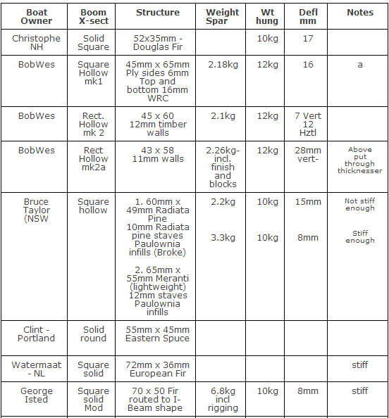 The other change that had led to was experimentation in the boom stiffness and dimensions as the standard boom in the plans only works with a laced foot – this is a snapshot – you can see the complete data on the WIKI: