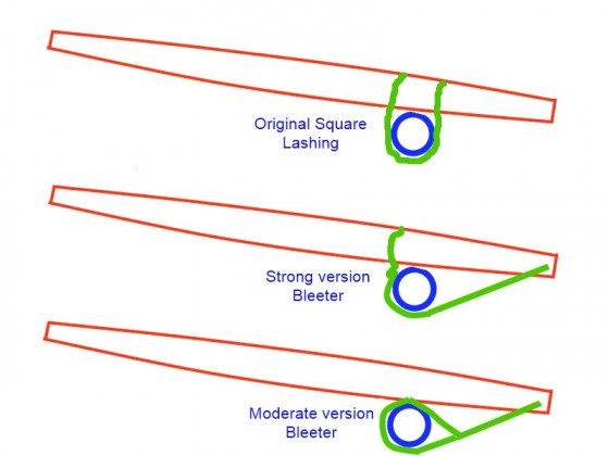 This illustration below shows the original square lashing compared with the bleeter (bleater).