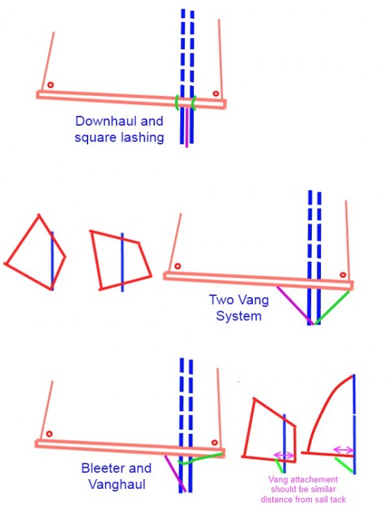 Then the comparison of the original, the two vang and the bleeter/vanghaul system in this diagram.