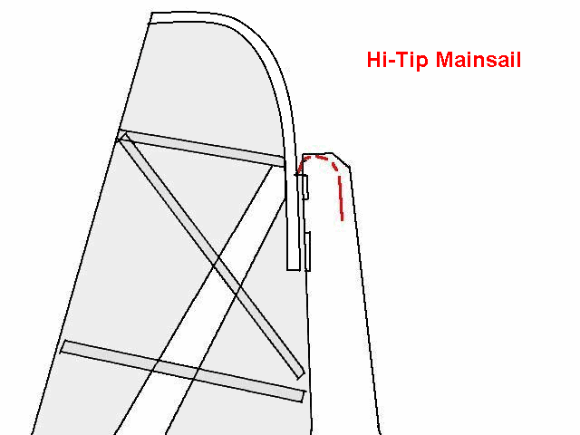 Let's look at the needs and attributes of a multihull, compared to what this rig offers. First of all, a multihull rarely sails directly 'downwind' as it's far more efficient to broad reach and 'tack' downwind, as the much higher boat speed can generally more than make up for the extra distance sailed. Also, due to the higher speeds typically achieved on a multihull, such a boat is effectively 'going up wind' far more often than even a regular Bermudan-rigged mono. Even reaching across the wind while travelling fast, the apparent wind will move so far forward that it appears to come from ahead and the sail will need to be hauled in closer and then, the long leading edge of a tall rig really starts to pay off when comparing 'lift' to aerodynamic 'drag'. It's true that the peak of the typical triangular sail is not very efficient, as the masthead is proportionally too large for the sail behind it. So the ideal is to have an elliptical head, offering comparatively reduced mast tip drag with more area-and the so-called fat-head rigs now lean in that direction. (Here's a sketch of something I dreamt up a few years back, but never tested ;-)