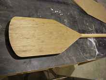 Finally complete - except for the varnish. Note that, in the end, I decided the blades as drawn were bigger than I wanted... so I have scaled them down a bit. Time will tell whether this was a good idea. But these two are not for active, primary, canoe paddling. They are for my personal use - as backup (when I don't want to use oars) auxiliary propulsion for two different sailing dinghys.