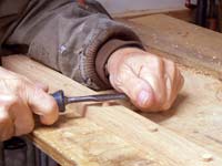 Back to driving the plug in. Don’t hit it with a hammer, that compresses the plug of wood, I press it in with the back of a chisel blade, just firm hand pressure.