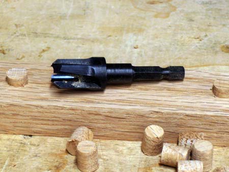 Set the drill press speed on medium slow, maybe 400 rpm for half inch plugs, 600 rpm for 3/8in.