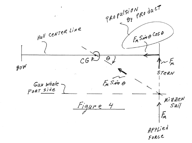 Figure 4 is a Force Diagram, modeling the Mizzen Sail on the port side of the stern.