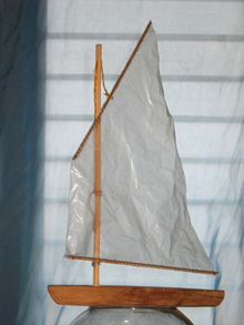 My eyes glanced quickly over the page. The read was of quality, but the minuscule photos gathered little notice. Just before pressing the exit button to extinguish the page forever, I thought momentarily to scroll up to a smallish B&W photo that I perceived from the edge of my eye while reading the text. "By Jove," I said to Feebee, "now that's a chirpy little sail that would look quite splendid flying over CHERRYL!" (CHERRYL is the name chosen for the construction effort still sitting un-baptized in the driveway).