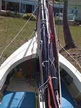 I spent a lot of time fiddling with the rig especially the main sail. As the Gaff main is large I wanted it to be easily and quickly reefed single handed. So I started by designing lazy jacks. The lashing system on the luff I found cumbersome so I installed a SS track, and then I had to install quarter round rubbing strakes to stop the gaff's throat from being cut to pieces by the track! Finally I designed a bag to accept the sail as it was reefed or stowed - what a difference!