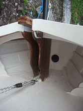 Trying to put the mast through the hole in the deck down to the mast step was a two man job, but I found I was standing on the forward deck and trying to put the mast through the hole which was treacherous! So we modified the configuration to an under deck tabernacle. If you look on the forum various solutions have been designed and installed in these boats so as to make rigging a single handed affair.