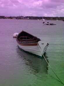Sabino- I took this picture back in the early 80's. Mystic Seaport had just launched the dory it was still bare wood. I got to row one of these dories about 10 years later. |