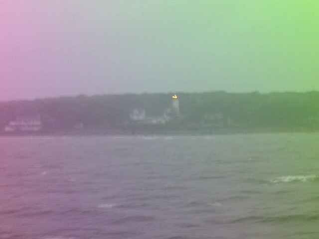 Lighthouse - West Chop light I took this on the way out, the blur is from the pounding the ferry was takng. |