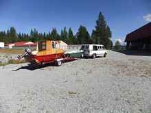 Once back on the trailer, it was time to think about driving back over that "scenic" highway. As I was checking the trailer load, blinkers and lights, I discovered that I had a headlight out. The nearest auto parts store was probably 75 miles away-using Lewis and Clark's route. When I tried to call home and say that I just might not be heading that way until daylight; I was reminded why it's called wilderness. No phone service. So it goes.