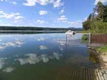 The run from home out to Roosevelt is about 60-odd miles. A couple tiny burgs, a cross roads or two. And, just lots of trees, farm fields, cows, horses. I even had to slow down for a coyote who sauntered rather insouciantly across the highway out past the "metropolis" of Loon Lake. I stopped at Eloika Lake to check out water levels at the ramp, and there was one guy fishing from the dock. No boats out.