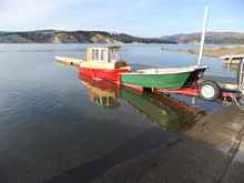 So, after stealing swing stove, mooring lines, life jackets, anchor rode, and a bunch of other stuff from Old Salt and Ladybug, I hooked up the stretch trailer with Shenanigan and Kokobot aboard. I pointed Big Ole out of the storage yard quickly. Before the other boats had time to figure out they might be already "in for the winter." Hey, you can't be too careful. Sort of like bringing your girl friend home to meet your wife. There are some things that we of the simpler sex just don't always foresee when it comes to petty jealousies. Know what I mean?
