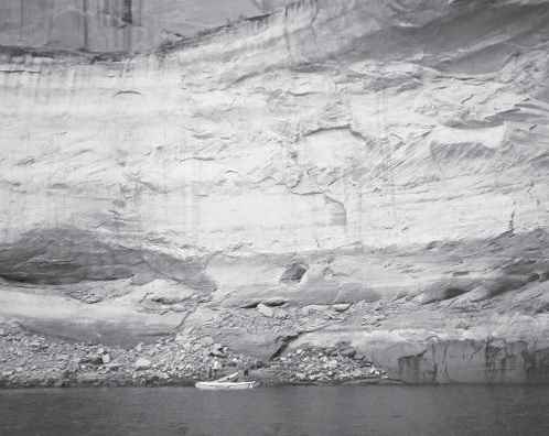 The low water level meant that now there was only one way to go, up the lake through a passage called The Narrows. This is a relative term, certainly there is room for huge houseboats and all the other varieties of watercraft, including jet skis. The walls of the canyon are high and rise straight up out of the water on either side. The part we had not anticipated was the condition created when all those different boats were coming and going at the same time. It was Labor Day weekend and there were many boats, both coming and going. Each seemed to create the maximum wake by going just fast enough to plow the water into waves, waves that spread out and bounced off the walls of the canyon like the notes of many different musical tempos. You would almost think that all those different wakes could come back together and combine to become smooth, maybe 2' higher than the actual water level. I must have been delusional to even imagine that!