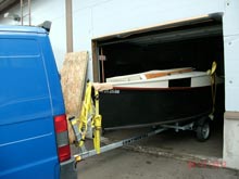 KOTW being towed out of a Finnish warehouse, on a Latvian trailer, by a Russian truck.