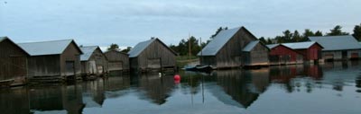 The banks along this bay and along the other waterways leading in to it are dotted with small skiffs pulled up on land clear of the shoreline, sometimes clusters of 15 to 20 boats, but more often just single boats with 40 hp motors hanging off their stern. Not one, however, deigned to be out in this weather. Huge tour ships (Finnlines) pass by though. There are plenty of summer cottages- the ubiquitous barn red with white trim. I’d say there is one cottage to every ten boats.
