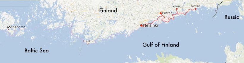 Up at 5:30. Slept in all my clothes; still cold but it is a sunny day and promises to warm up. Winds are out of the Nortwest and light. I’m on my way to Porvoo to buy needles and thread to repair the birdwalk hatch cover ripped in transit from the States.