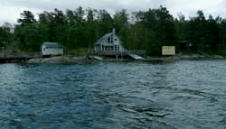 A lovely day for a sail down to Helsinki. Storm clouds on the horizon and distant thunder and occasional lightning in the morning found me seeking shelter up a small river lined with vacation cottages. I tied off to a small dock in front of one of them. The owner came down to the dock to welcome me, and I enlisted him to help reseat my motor. The storm blew over leaving only a few drops of rain, and I resumed my run to Helsinki.