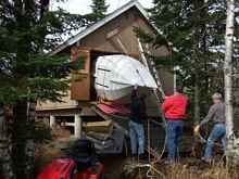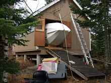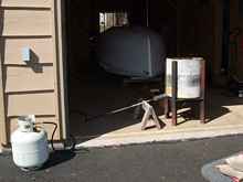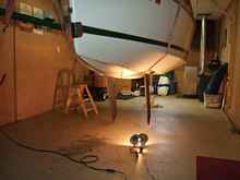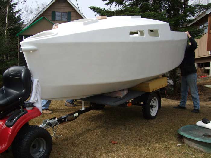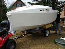 Finally, we have a coming out party for "Bijou". We have a little help with moving the boat from my shop from my son and grandson. Loaded on the trailer it will be a short trip down to the garage stall where she will be finished.