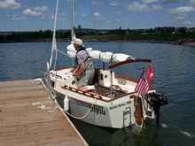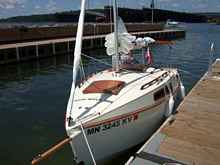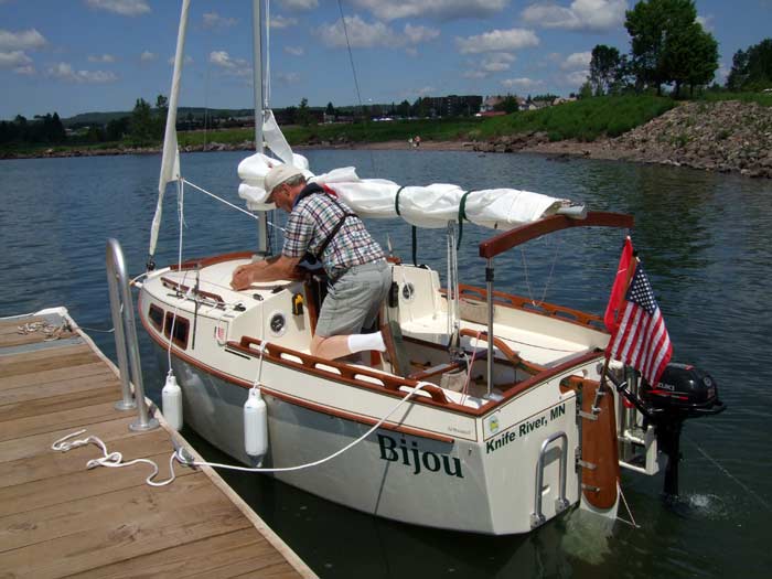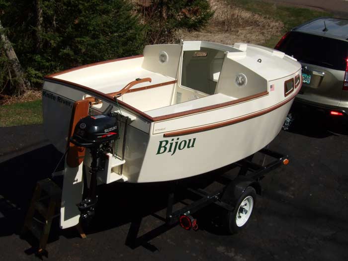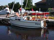 We had her at SailOklahoma 2012 where despite cooler than normal weather we had a few great sails. The greatest thrills that we could have hoped for occurred their when Howard Rice sailed "Bijou" with me for quite a few miles. To have him wring it out and feel that it did sail quite well was certainly a great thrill.