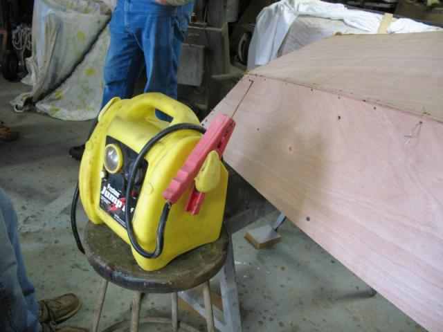 Next, the boat gets flipped, all the wires are pulled and the chines get rounded and taped. Probably a short day.