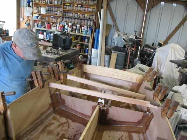 The next goal is to finish the framing for under the rowing seat, layout the seats, and glass the bottom of the after section. Hopefully.