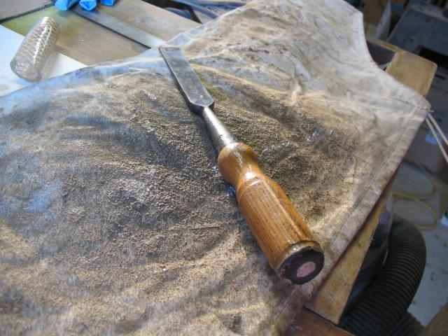 But, the first order of business was to grind the fiberglass tape edges smooth. Nasty, dusty job, so no pictures during the process.