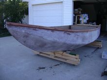 Due to many factors, including reduced stamina for hard work, I worked a few hours per weekend in the spring and fall seasons only, when the weather was kindly! I would roll out the skiff on a homemade boat carriage from my garage and work in my driveway, then push it back inside when that session was complete. I finally completed the project two years after beginning the build!