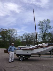 Here's a few pics of the Michalak Family Skiff I built, with help and supplies from Duckworks, on its maiden voyage. There's been years of delays but I'm finally learning to sail in my own homebuilt boat! The trip to nearby Pickwick Lake on the Tennessee River was overall great fun, even though a few glitches were experienced launching and loading on the home customized trailer.