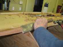 SMOOTHING INTERIOR SEAMS GETTING READY TO APPLY FIBERGLASS |