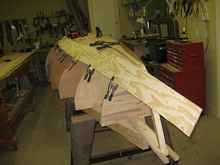 GLUING UP OUTSIDE BOW AND STERN PIECES |