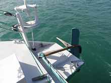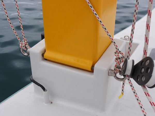 One of the tabernacles for the masts. The masts can be set and lowered without outside help.
