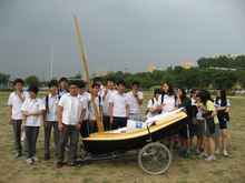 Last time when we carried HD24 to the Han River behind our school, a heavy wooden-made wagon made us sweat a lot. Therefore, a need for a new trailer to carry her occurred to us. We decided to make that trailer as light as possible as we did on our yachts and used wheels form a wheelchair, which had been in our club room, and some carbon pipes for building. By this point you might think our club room must be quite messy, and I have to say that this room is more like a chamber of secrets than any other ordinary club room.
