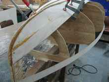 We made mast clamps, center board, and then a couple of oars. We made use of spruce timbers that had been seasoned for at least two decades at the corner of club room.